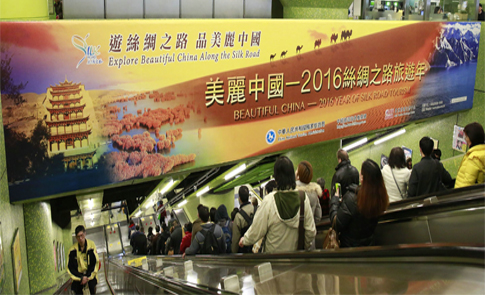 據(jù)介紹,此次在港鐵投放大型旅游廣告首次采用了國家旅游局“全年整租”、相關方旅游部門聯(lián)合投放的方式,著眼于全年旅游廣告整體規(guī)劃,不但優(yōu)化了廣告性價比,創(chuàng)新了投放形式,形成了合力,更體現(xiàn)了服務地方的宗旨。廣告選址在港鐵灣仔站大堂扶梯處,每天往來乘客超過30萬人次,受眾廣泛。廣告內容以絲綢之路為主線,貫穿沿海及內陸省份,向港澳同胞展示了祖國壯美的山水風光、悠久的文物古跡和多彩的民族風情,將持續(xù)吸引港澳同胞赴內地旅游,進一步鞏固港澳同胞入境旅游基礎市場。